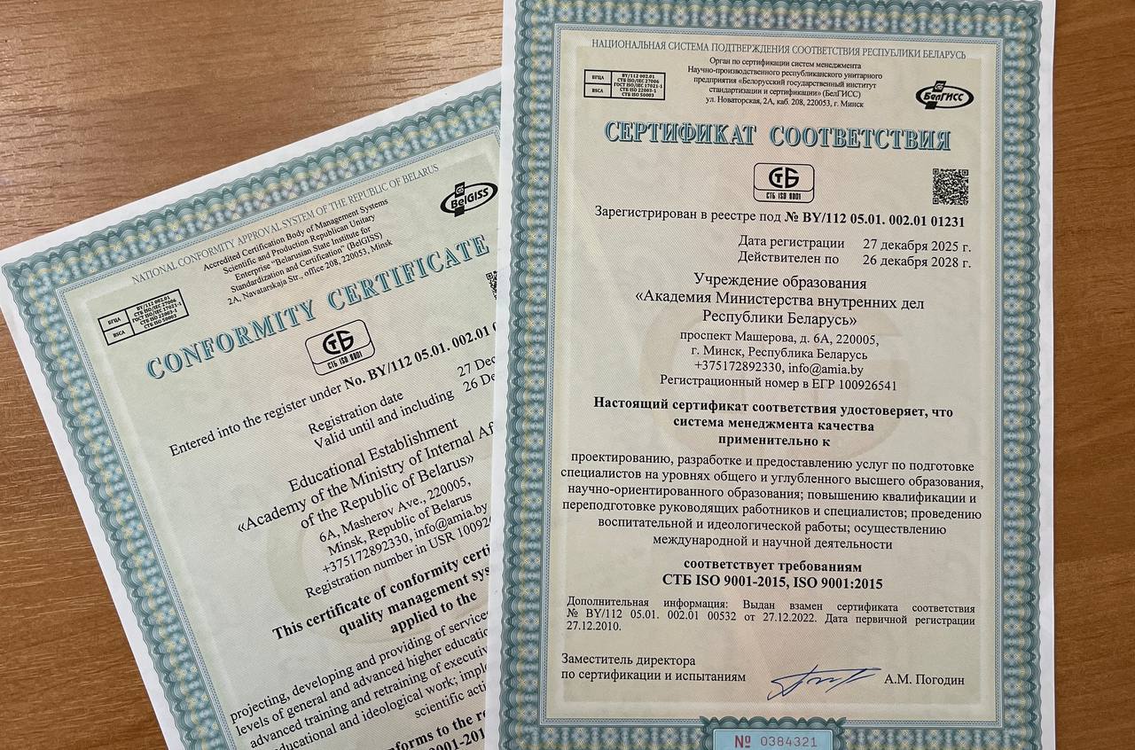 Система менеджмента качества и ее сертификация способствует росту деловой репутации нашего учреждения высшего образования, укреплению авторитета и конкурентоспособности ведомственного образования.