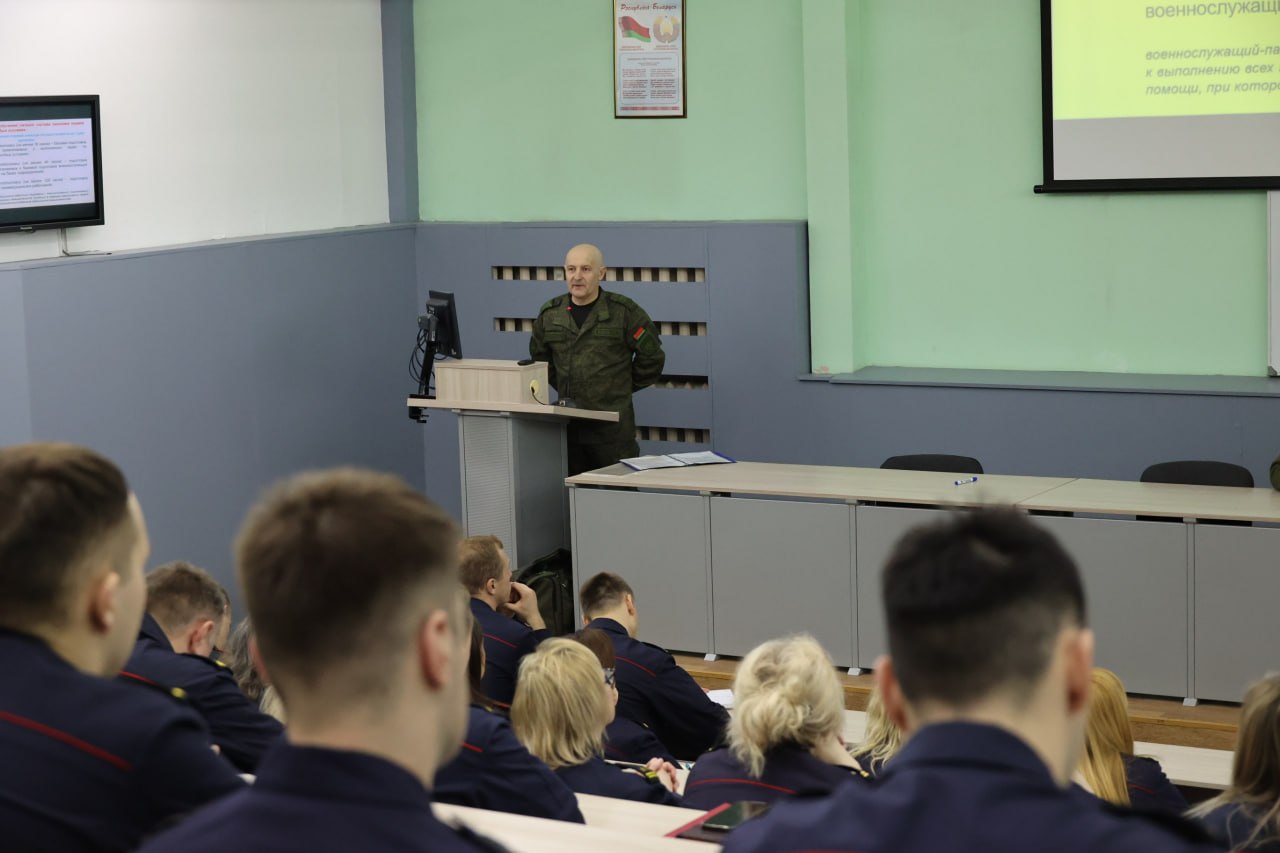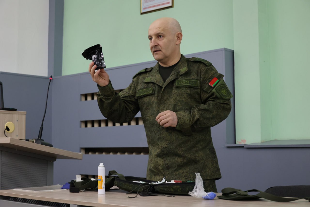 Занятие по тактической медицине для офицеров Академии МВД провел исполняющий обязанности начальника цикла тактической медицины военно-медицинского института Белорусского государственного медицинского университета подполковник медицинской службы Анатолий Балков.