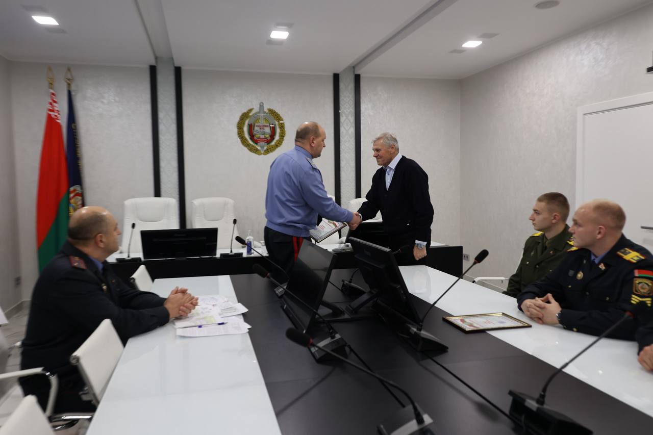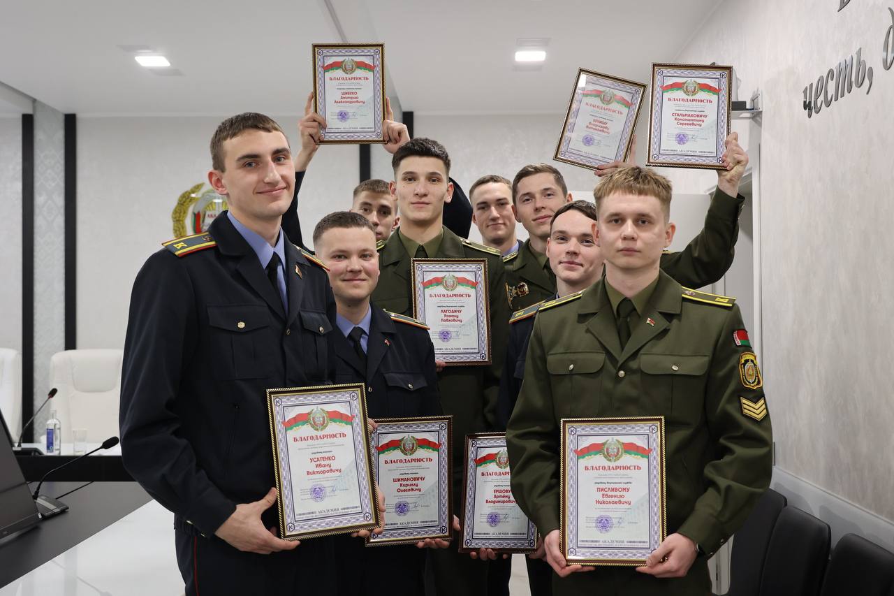 Начальник курса строевой части следственно-экспертного факультета подполковник милиции Виталий Шпаковский, курсант со всех факультетов Константин Стальмахович, Владислав Бекир, Дмитрий Шибеко, Роман Лагодич, Евгений Писливый, Артём Ершов, Кирилл Шиманович, Иван Усатенко и тренер команды - преподаватель кафедры профессионально-прикладной физической подготовки Евгений Богачев.