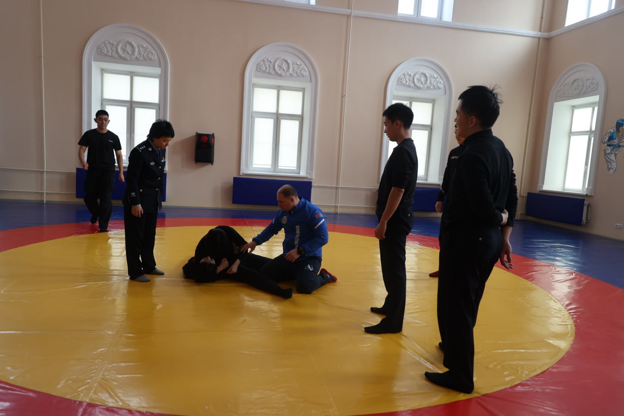 На учебных занятиях рассмотрели вопросы деятельности белорусских органов внутренних дел по профилактике домашнего насилия (лекция), противодействия информационно-психологическому воздействию в киберпространстве (круглый стол), продолжили осваивать приемы борьбы (практическое занятие).