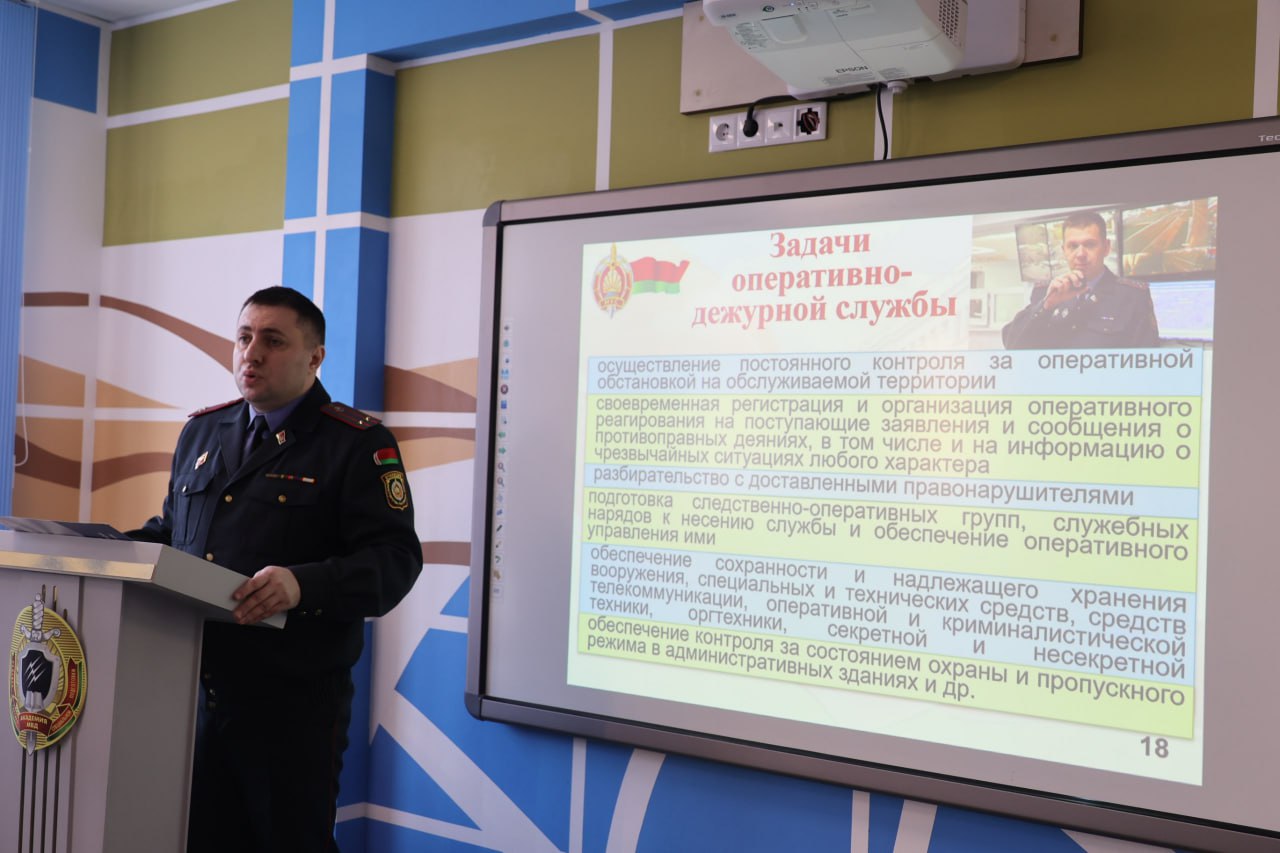 Лекционное занятие на тему «Милиция общественной безопасности органов внутренних дел Республики Беларусь: задачи, функции и организационное построение» провел доцент кафедры административной деятельности ОВД факультета милиции общественной безопасности Святослав Старовойт.