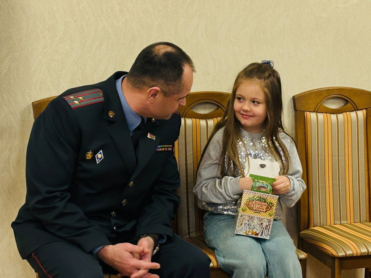 Вокруг была по-настоящему новогодняя атмосфера. Курсанты перевоплотились в сказочных героев, был и Дед Мороз, и Снегурочка и другие персонажи сказок. После дружного хоровода под елочкой каждый ребенок нашел подарок.