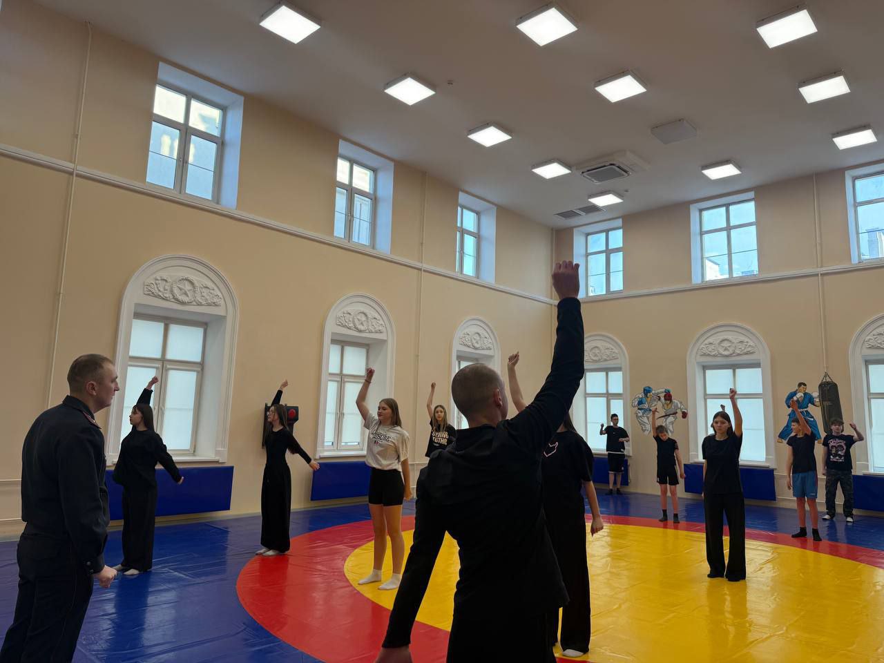 Юные патриоты изучили приемы самостраховки под руководством преподавателя кафедры профессионально-прикладной физической подготовки Дмитрия Матюхина.