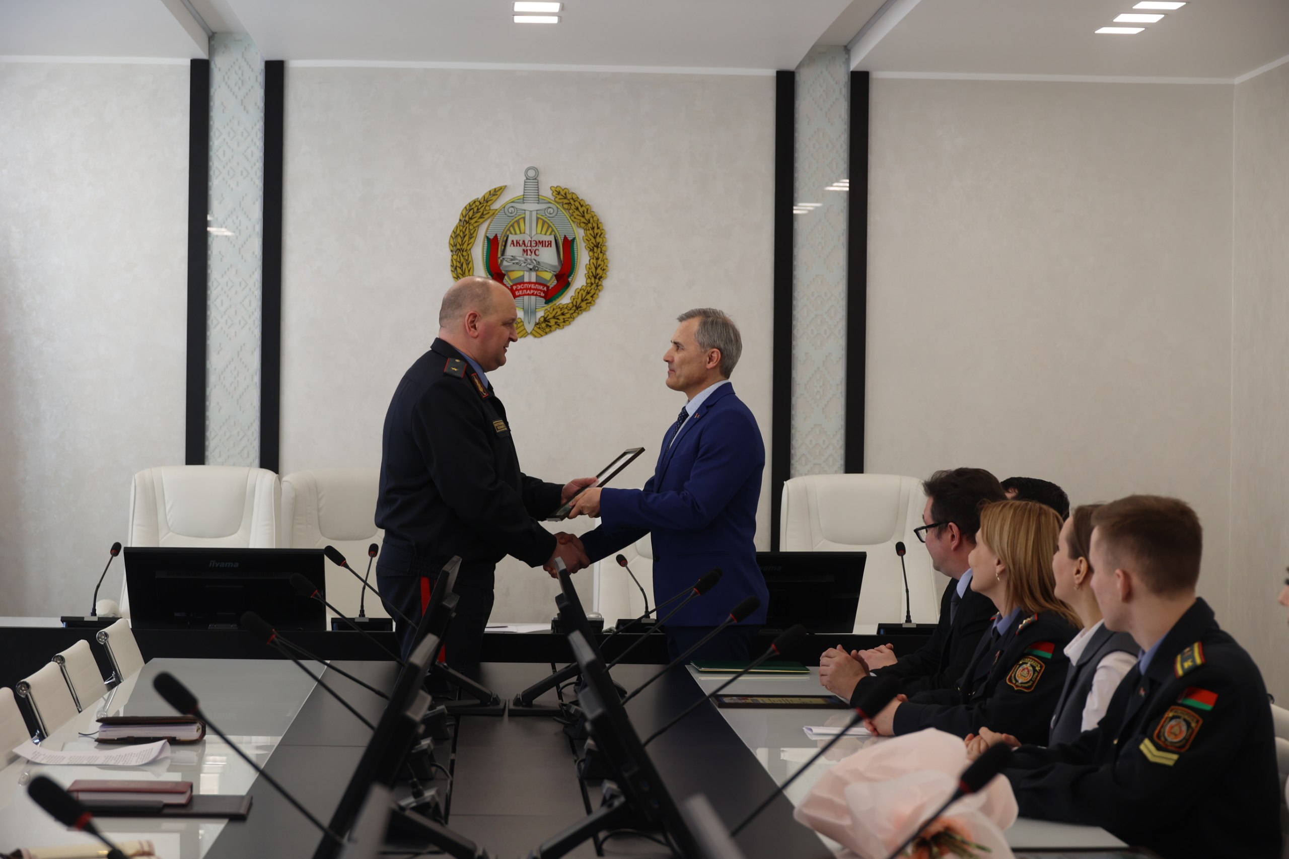 За победу в Международном конкурсе на лучшее научное издание по проблемам противодействия преступности вручен диплом I степени в номинации «Актуальные проблемы наук уголовно-правового цикла» доценту кафедры оперативно-розыскной деятельности факультета криминальной милиции Дмитрию Харевичу.