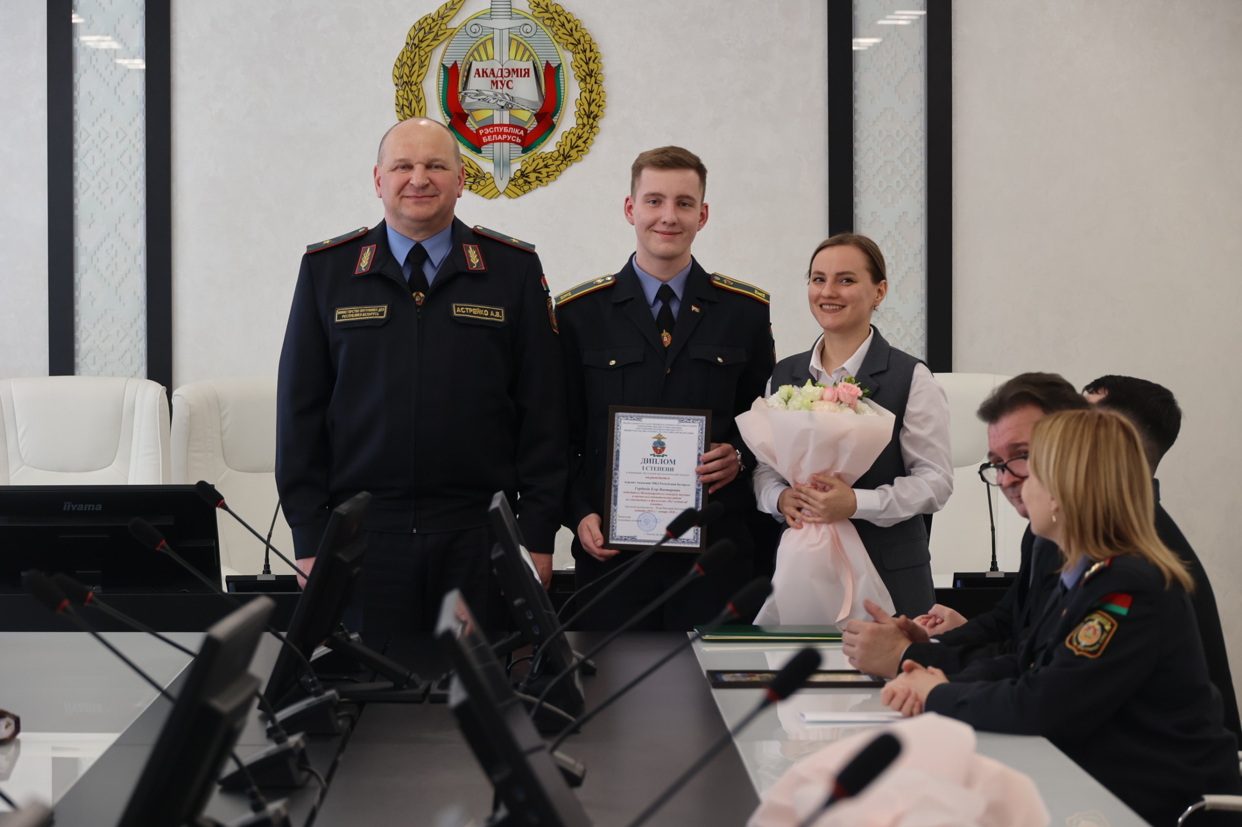 Дипломами I степени за участие в Международном конкурсе научных и научно-исследовательских работ по лингвистике и филологии среди обучающихся образовательных организаций МВД России и иностранных государств награждены курсант факультета милиции общественной безопасности Роман Протасеня (научный руководитель – доцент кафедры белорусского и иностранных языков Алла Ефремова) и курсант факультета криминальной милиции Егор Горбачев (научный руководитель– старший преподаватель кафедры белорусского и иностранных языков Виктория Русак).