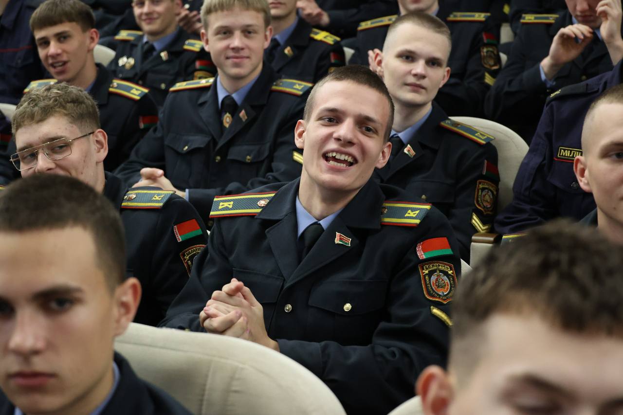 Народный артист рассказал о богатом творческом пути, с курсантами и офицерами вспомнили легендарные песни: на экране прозвучали хиты прошлого, а под аккомпанемент спели современные - звучала «Царица» и «Любимка», «Трава у дома» и «Седая ночь», десятки современных композиций.