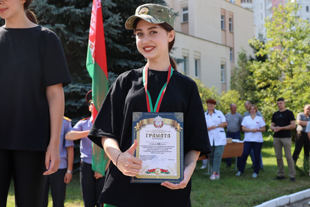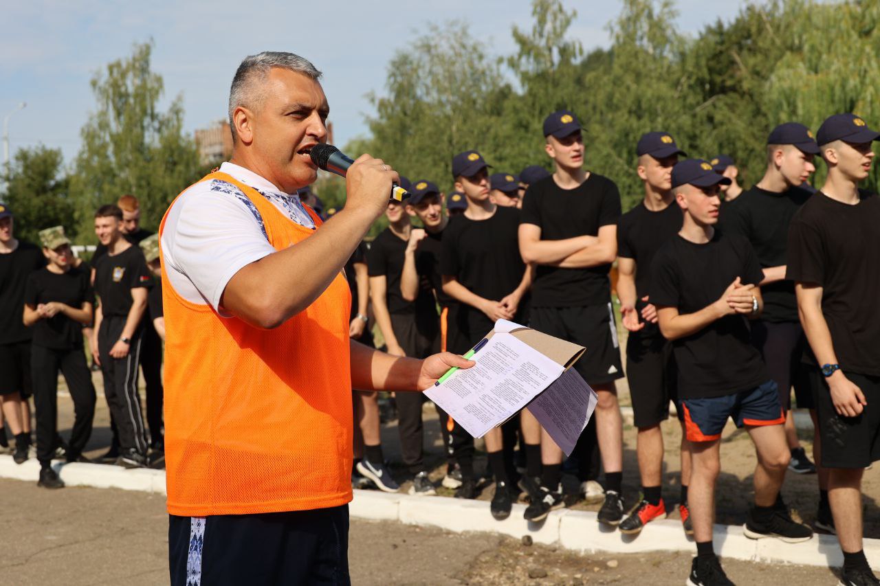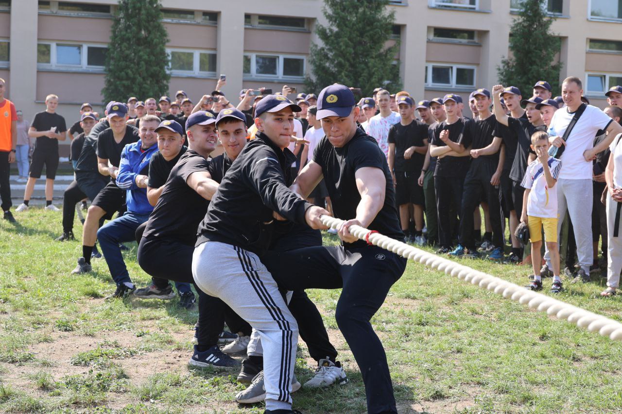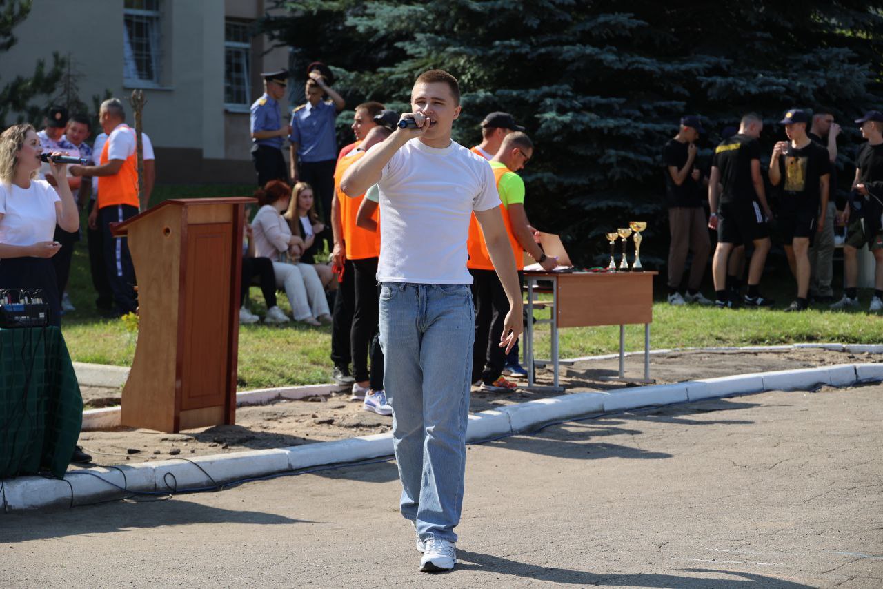 В Академии МВД многолюдно - первокурсники готовятся показать свои физические способности, которые развивали в течение двух недель учебного сбора. На спортивный праздник приглашены родители.