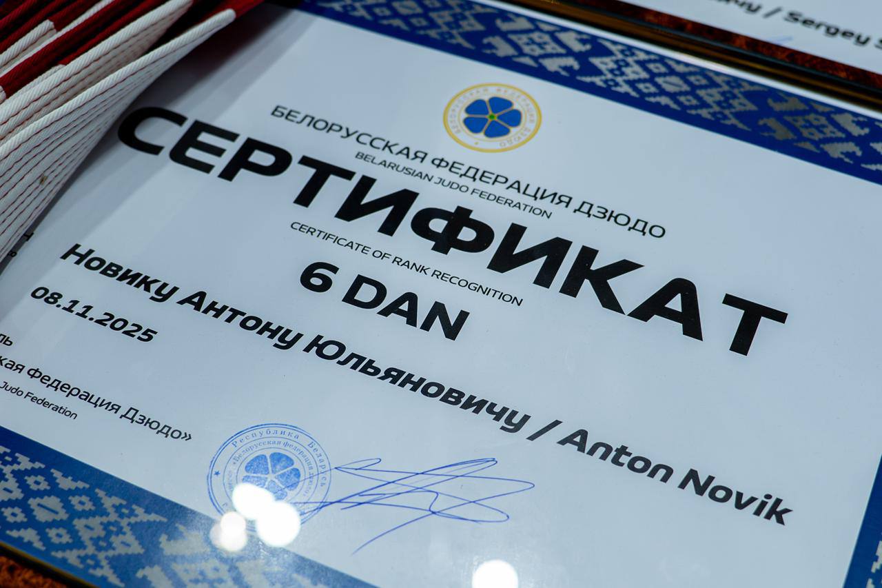 В рамках церемонии открытия состоялось торжественное вручение сертификатов шестого дана дзюдо и красно-белых поясов двум заслуженным мастерам боевого искусства.