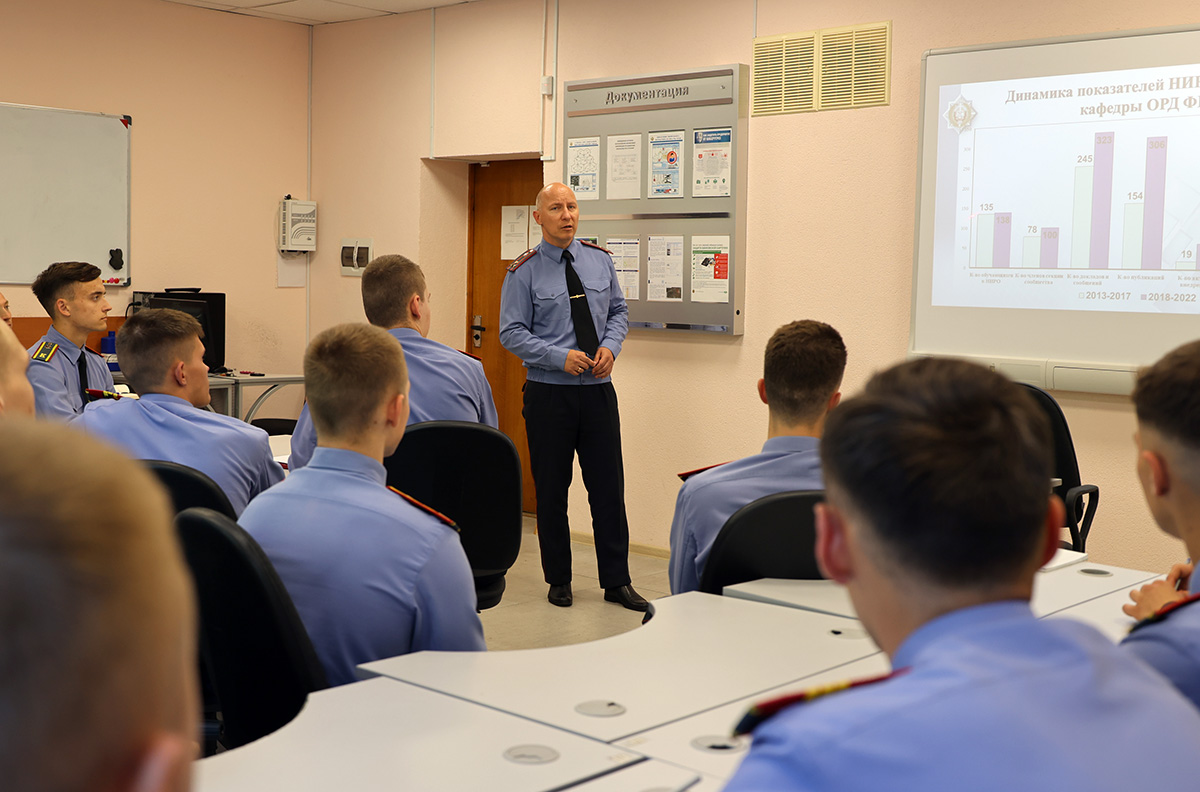 В начале мероприятия Алексей Тукало заинтересовал и мотивировал молодых людей к занятием наукой, рассказал о результатах работы сообщества, представил нового председателя - преподавателя кафедры ОРД ФКМ майора милиции Артема Мартынова.