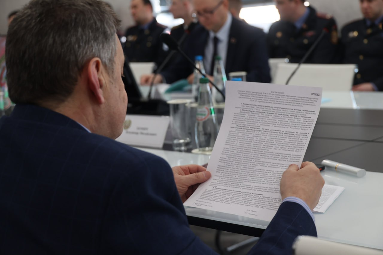 За трибуной начальник кафедры криминалистических экспертиз полковник милиции Антон Матлак с диссертацией «Диагностическая судебная баллистическая экспертиза ручного стрелкового огнестрельного оружия», представленной на соискание ученой степени кандидата юридических наук по специальности 12.00.16 - Судебно-экспертная деятельность.