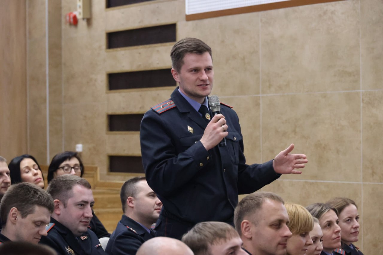 Продолжился единый день информирования выступлением начальника отдела идеологической работы подполковника милиции Сергея Ортюха.