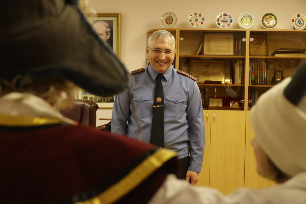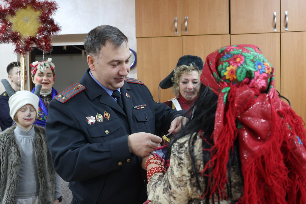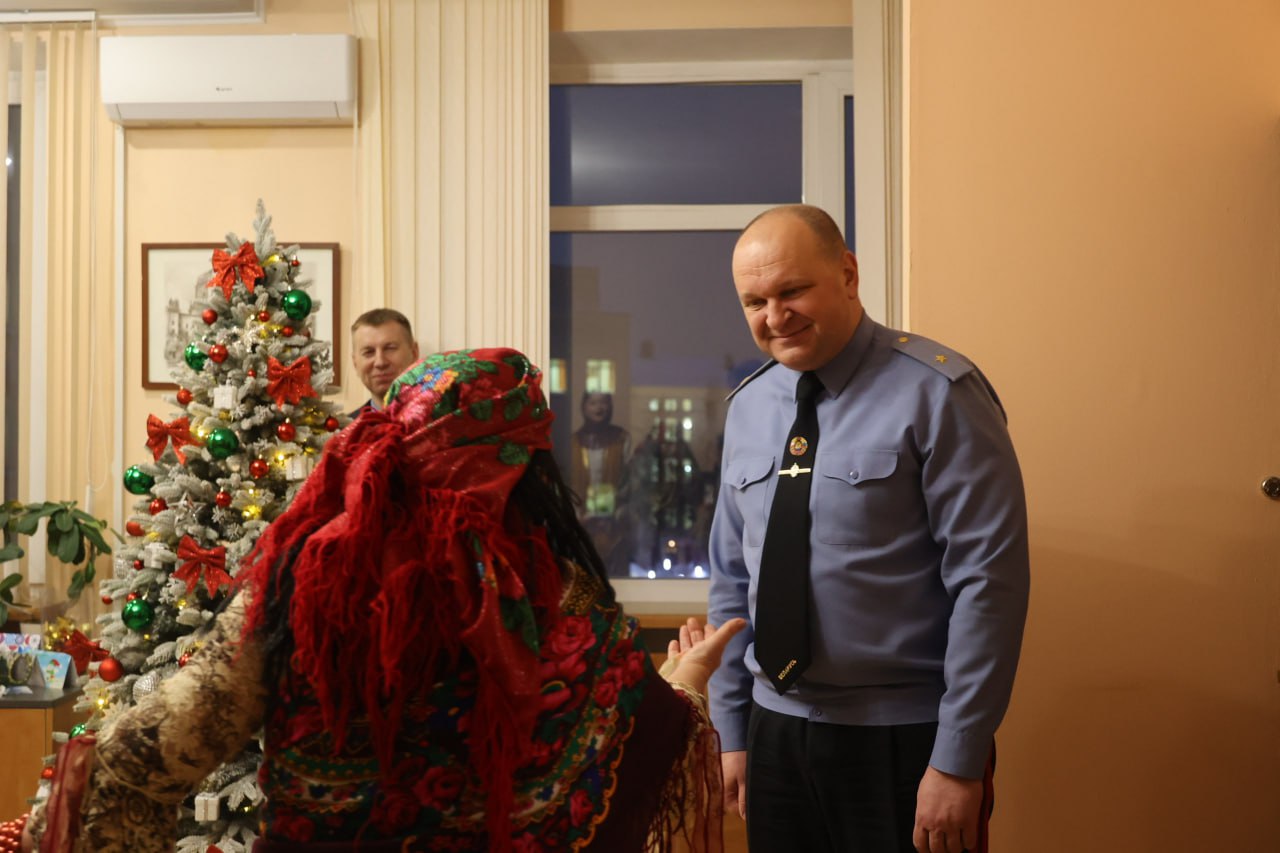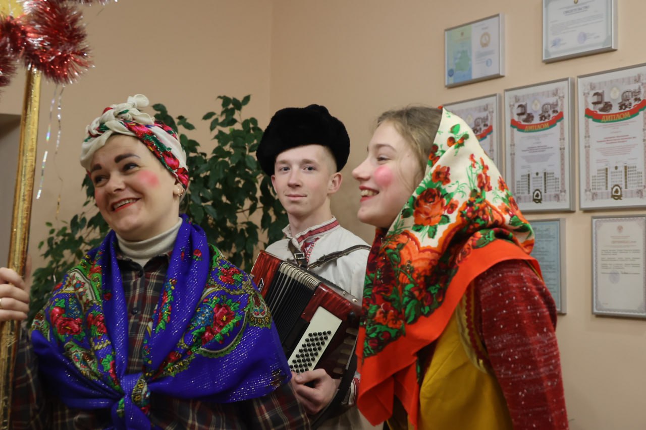 Атмосферу Колядок помогли создать дети и взрослые Михановичского центра культуры. Среди гостей - коза, цыганка с предсказаниями, медведь и красны-девицы. Первым необычных гостей встретил руководитель вуза генерал-майор милиции Александр Астрейко.