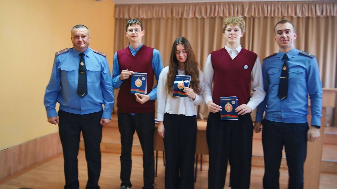 Старший инспектор группы профессионально-ориентационной работы отдела идеологической работы Академии МВД Денис Климович представил учащимся информацию о возможностях получения высшего образования в милицейской альма-матер.
