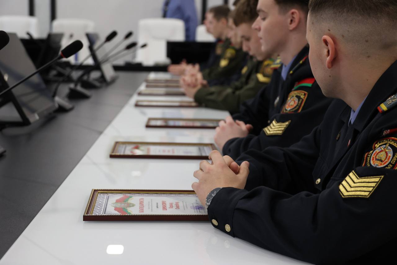 Начальник курса строевой части следственно-экспертного факультета подполковник милиции Виталий Шпаковский, курсант со всех факультетов Константин Стальмахович, Владислав Бекир, Дмитрий Шибеко, Роман Лагодич, Евгений Писливый, Артём Ершов, Кирилл Шиманович, Иван Усатенко и тренер команды - преподаватель кафедры профессионально-прикладной физической подготовки Евгений Богачев.