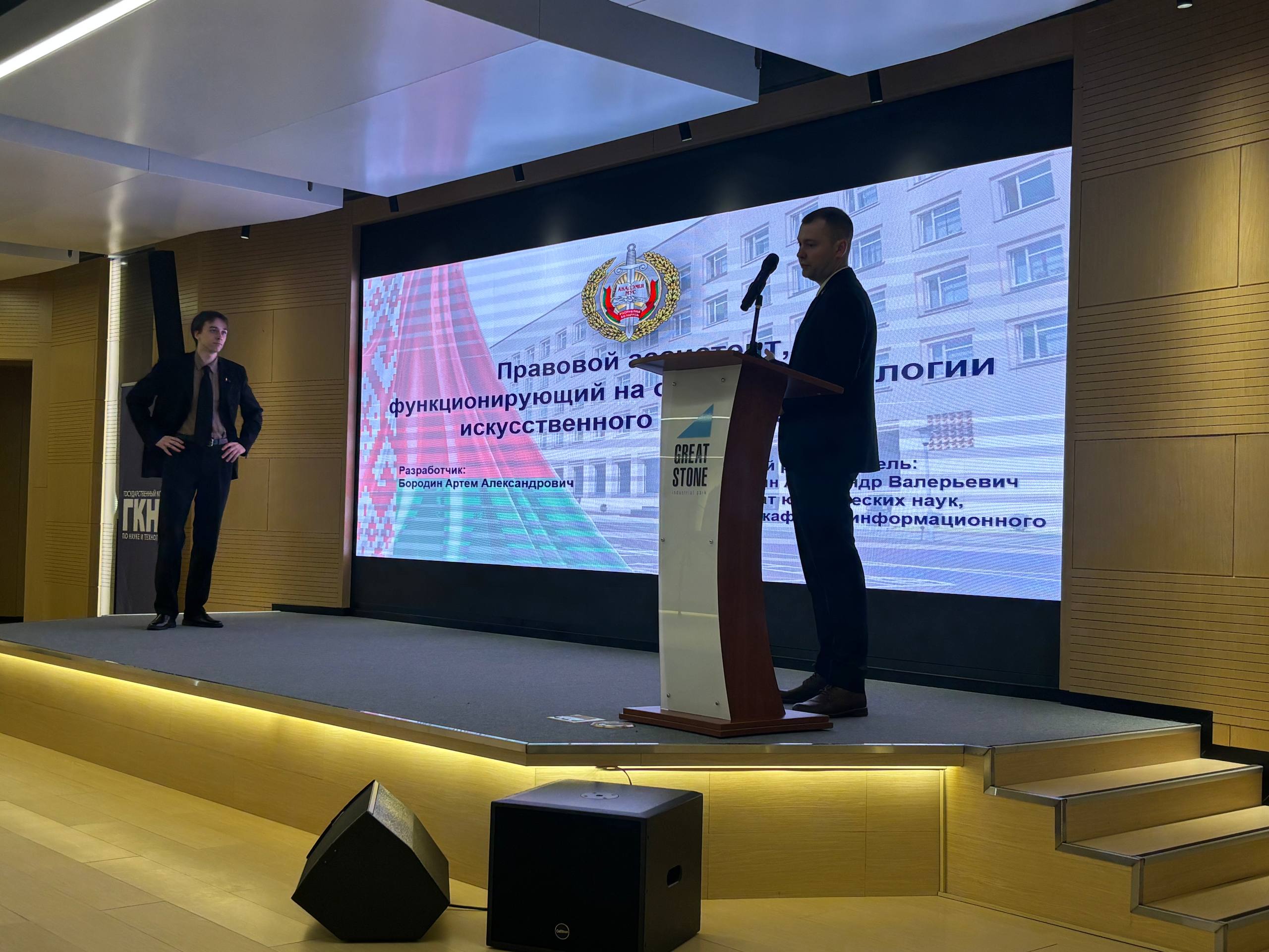 Свою разработку представила и Академия МВД. Кандидат юридических наук доцент кафедры информационного права Академии МВД майор милиции Александр Балиткин и его ученик – студент факультета права академии Артем Бородин, разработавшие систему поддержки принятия юридических решений на основе технологии искусственного интеллекта «Ассистент юриста».