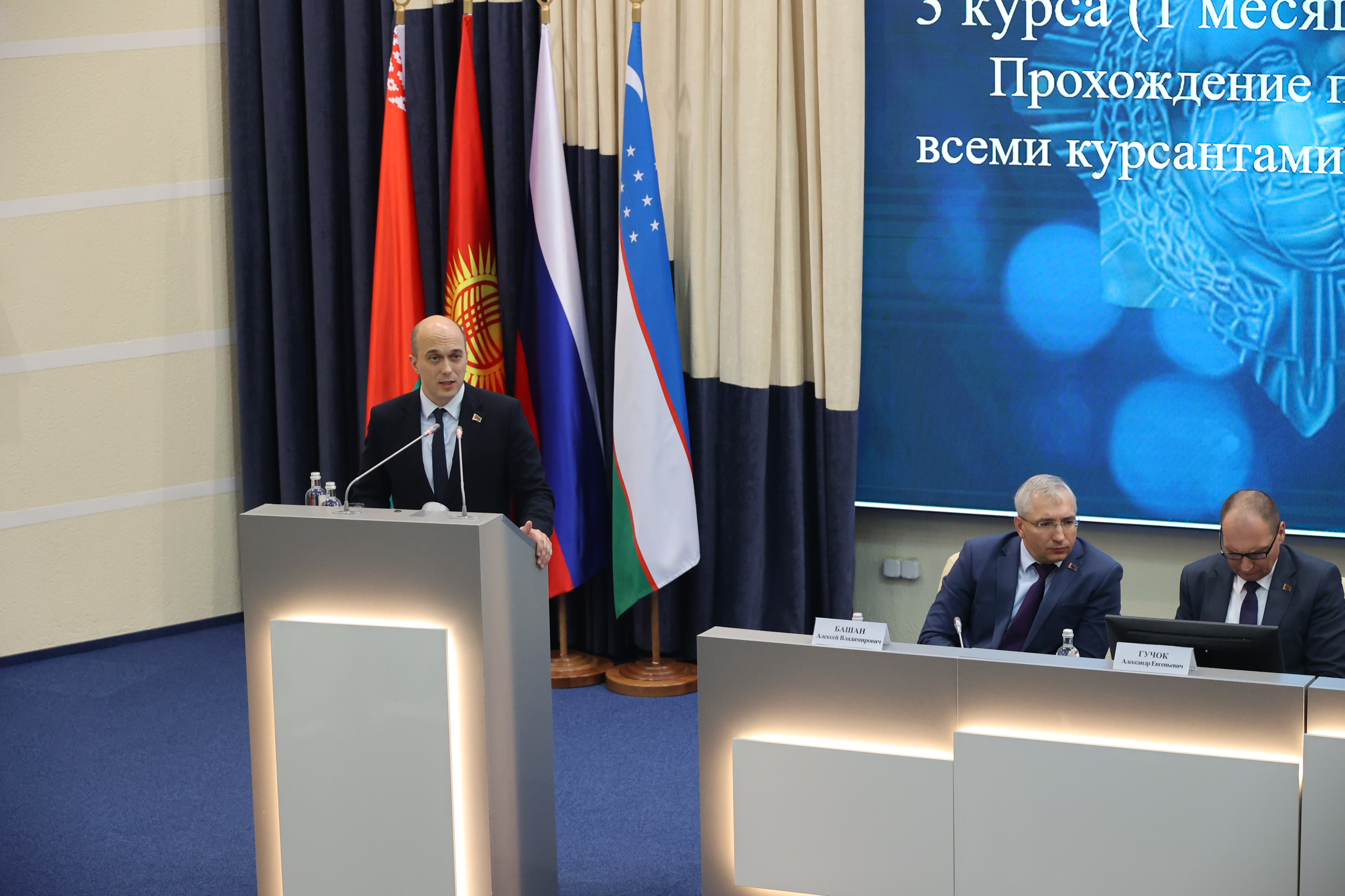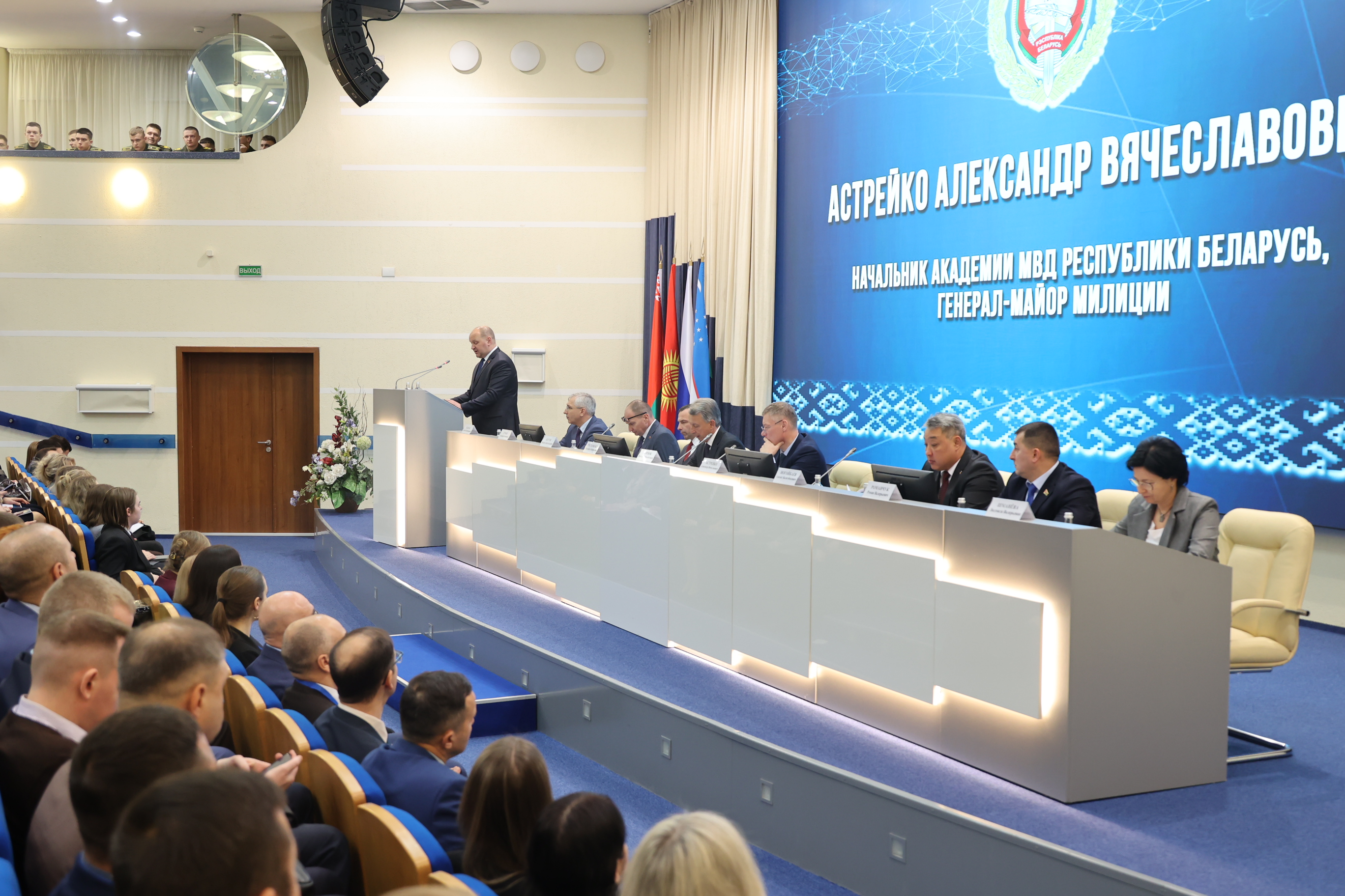 После открытия международной научно-методической конференции «Актуальные проблемы юридического образования» заместителем Министра внутренних дел Дмитрием КОРЗЮКОМ, с приветственным словом к участникам обратились начальник Академии МВД Республики Беларусь Александр АСТРЕЙКО, начальник Университета общественной безопасности Республики Узбекистан Мирзаюсуп РУСТАМБАЕВ, начальник Академии МВД Кыргызской Республики им. генерал-майора милиции Э.А.Алиева Азамат НОГОЙБАЕВ, заместитель начальника Московского университета МВД России им. В.Я.Кикотя по заочному обучению Людмила ШМАНЕВА.