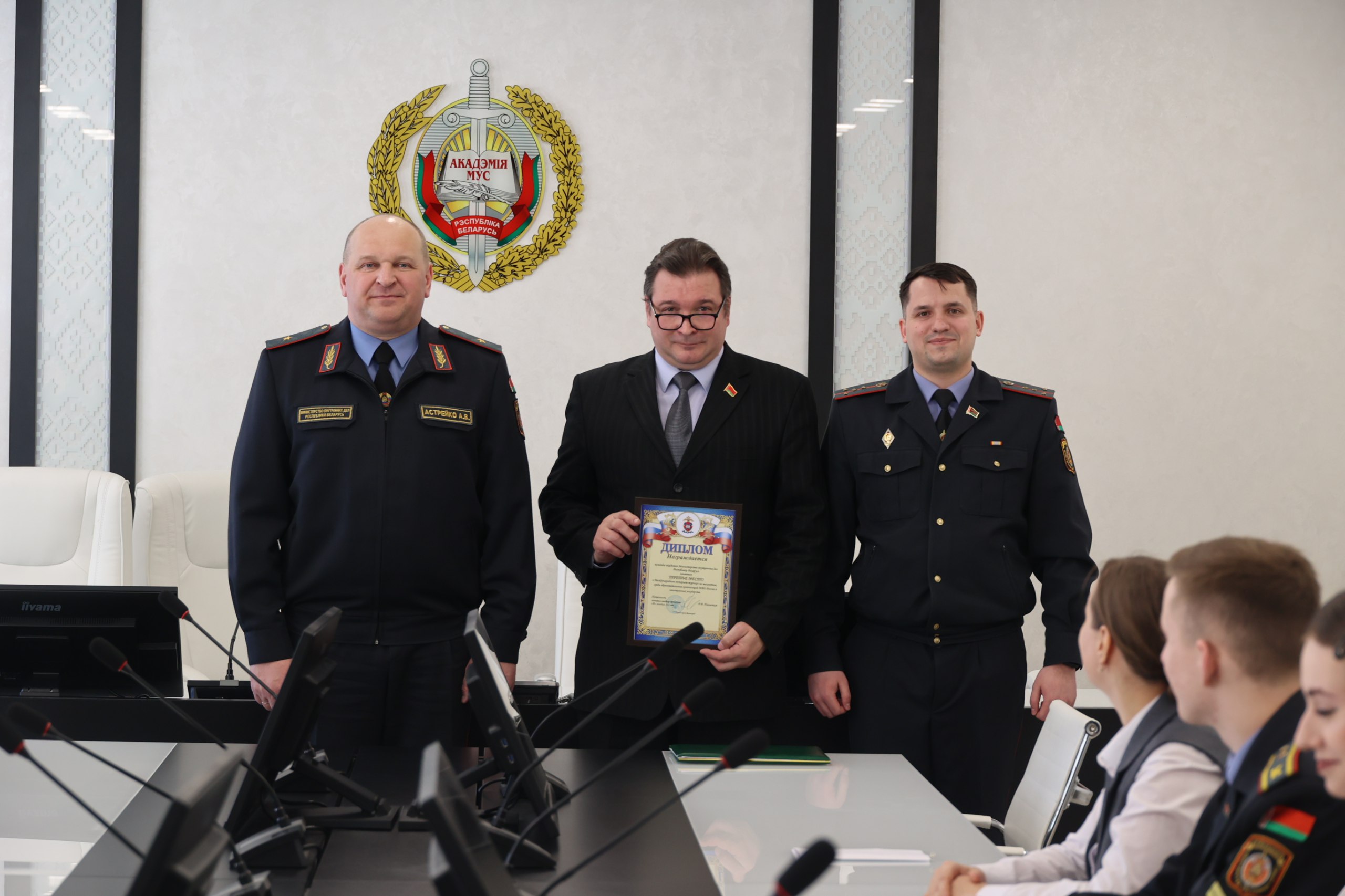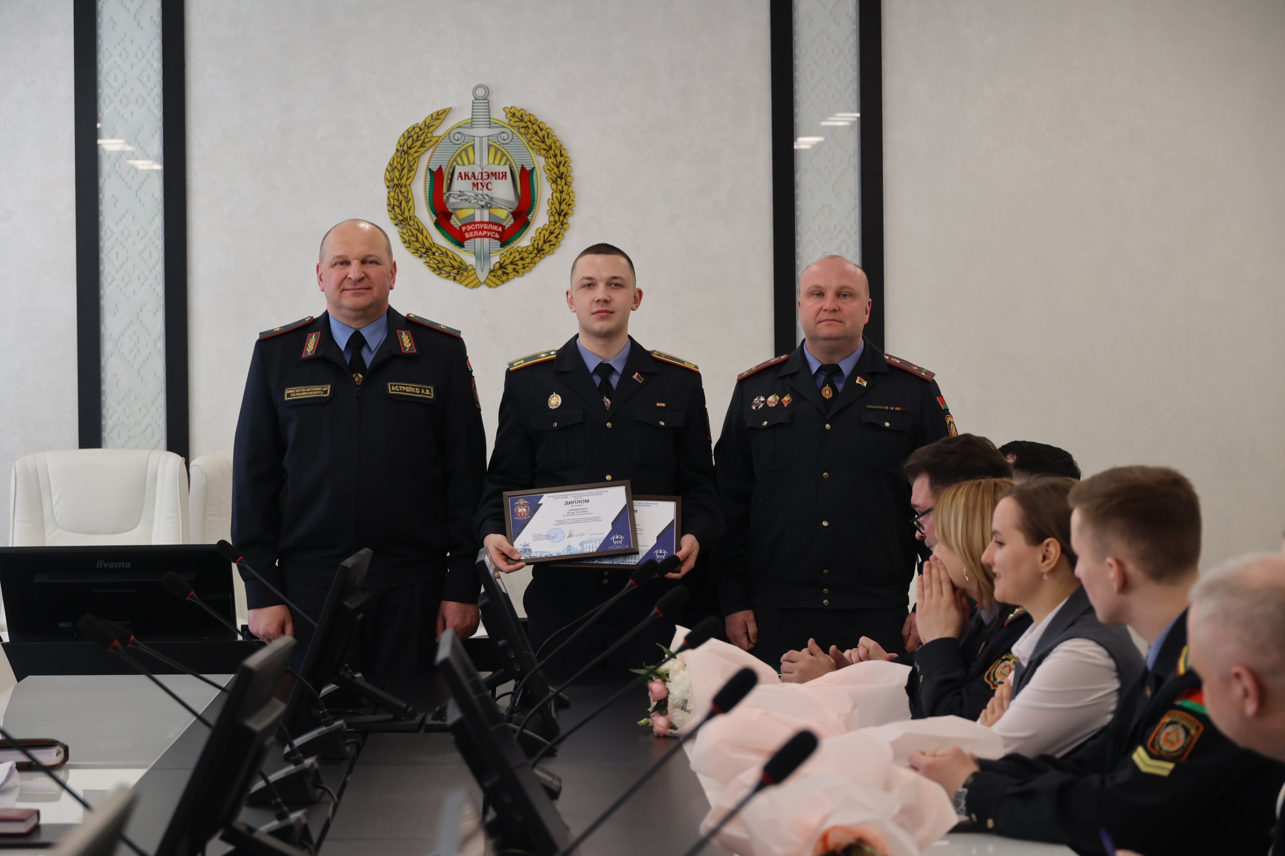 За победу в Международном конкурсе на лучшее научное издание по проблемам противодействия преступности вручен диплом I степени в номинации «Актуальные проблемы наук уголовно-правового цикла» доценту кафедры оперативно-розыскной деятельности факультета криминальной милиции Дмитрию Харевичу.