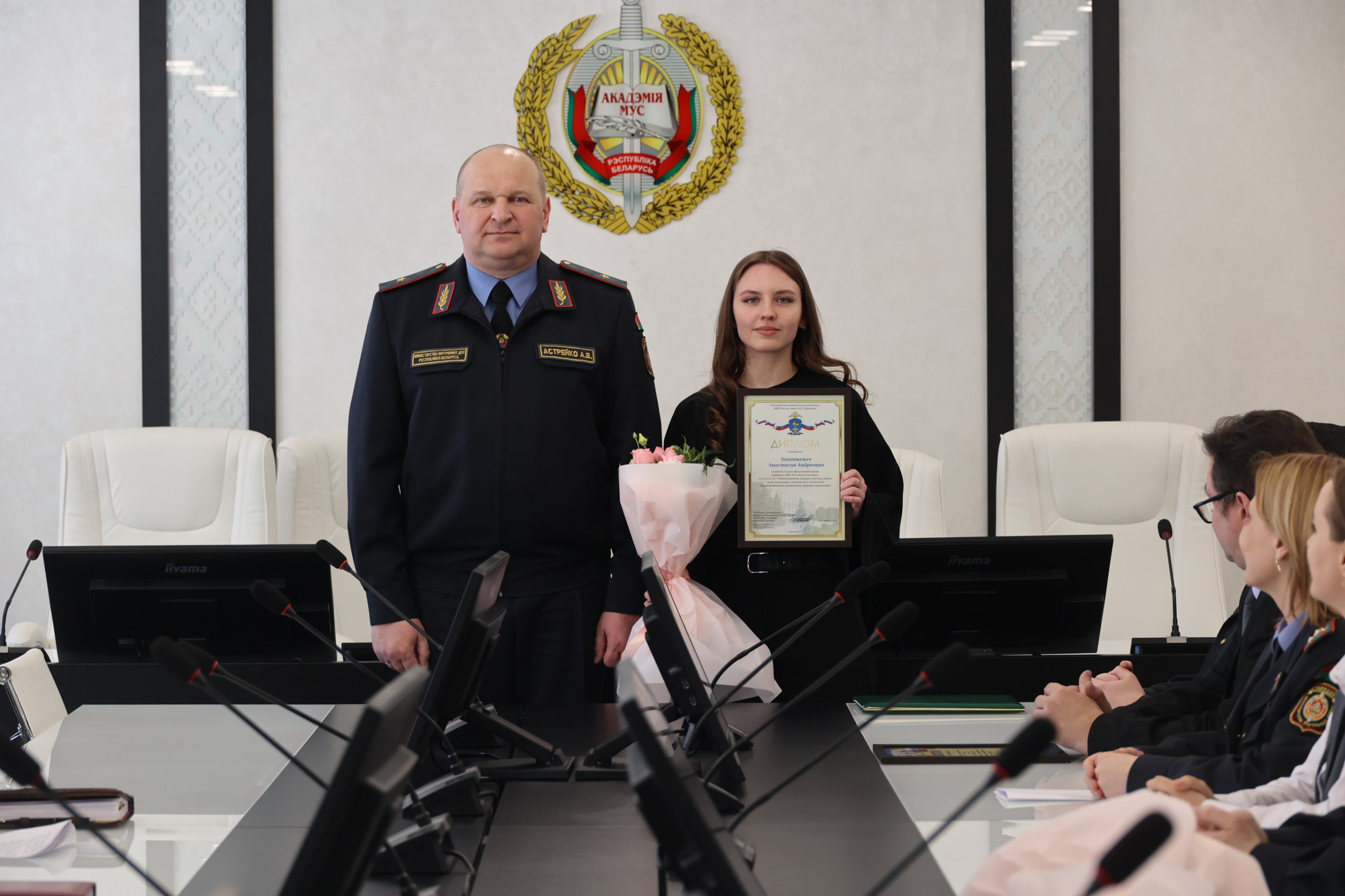 Дипломами I степени за участие в Международном конкурсе научных и научно-исследовательских работ по лингвистике и филологии среди обучающихся образовательных организаций МВД России и иностранных государств награждены курсант факультета милиции общественной безопасности Роман Протасеня (научный руководитель – доцент кафедры белорусского и иностранных языков Алла Ефремова) и курсант факультета криминальной милиции Егор Горбачев (научный руководитель– старший преподаватель кафедры белорусского и иностранных языков Виктория Русак).