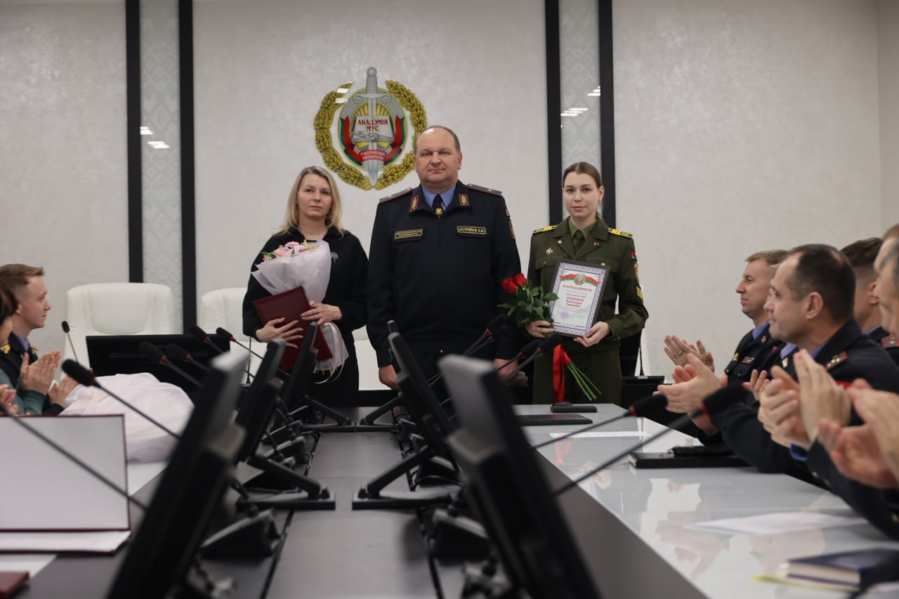 Родителям, воспитавшим своих детей в традициях патриотизма и любви к Отечеству, начальник Академии МВД генерал-майор милиции Александр Астрейко вручил благодарности, цветы и сказал слова благодарности: