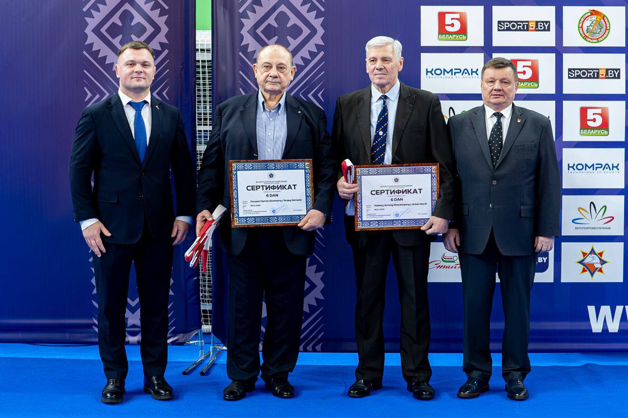 В рамках церемонии открытия состоялось торжественное вручение сертификатов шестого дана дзюдо и красно-белых поясов двум заслуженным мастерам боевого искусства.