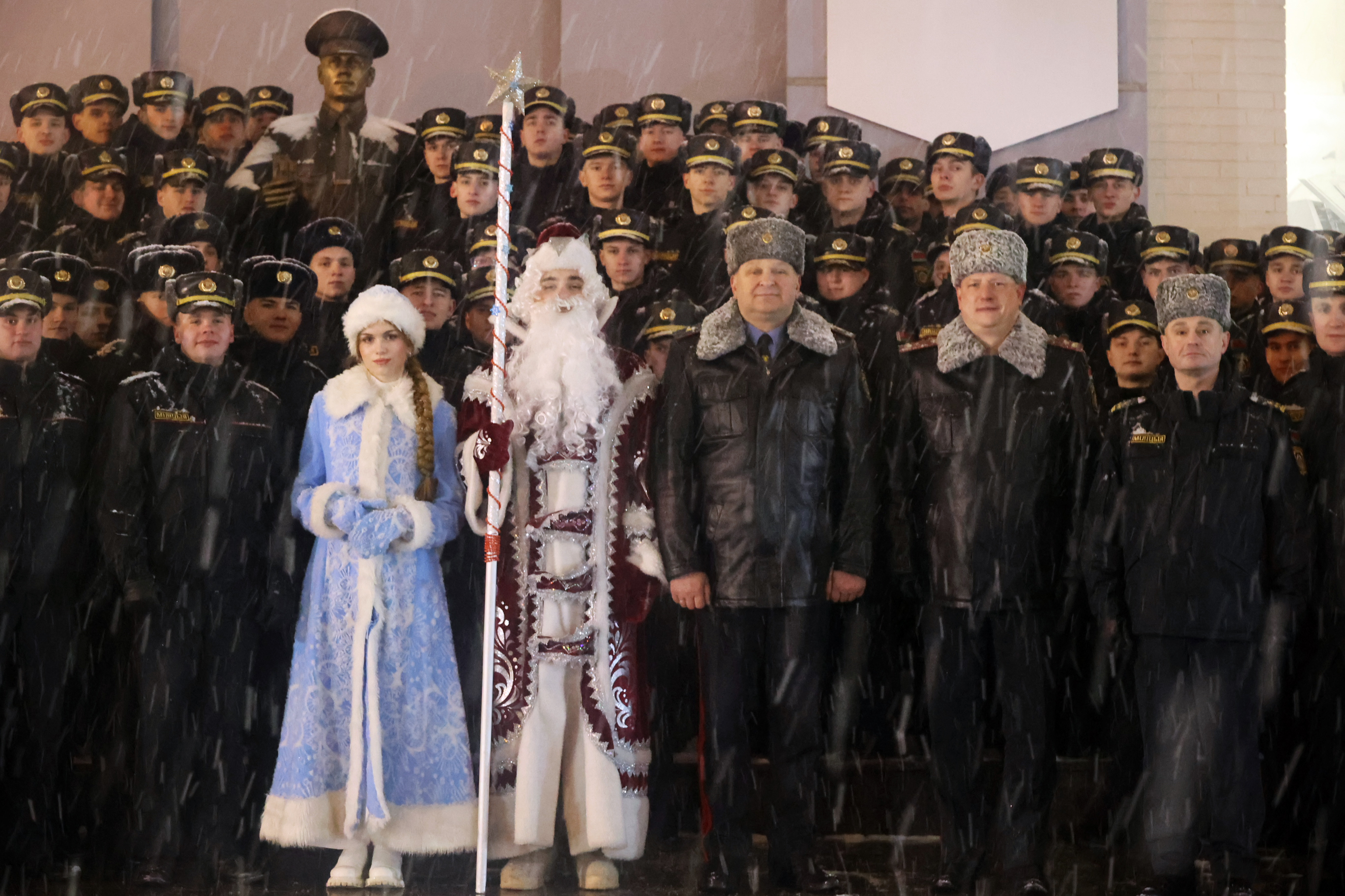 Все вместе поздравили именинника, прошли по плацу торжественным маршем и сфотографировались на память об уходящем 2025 годе.