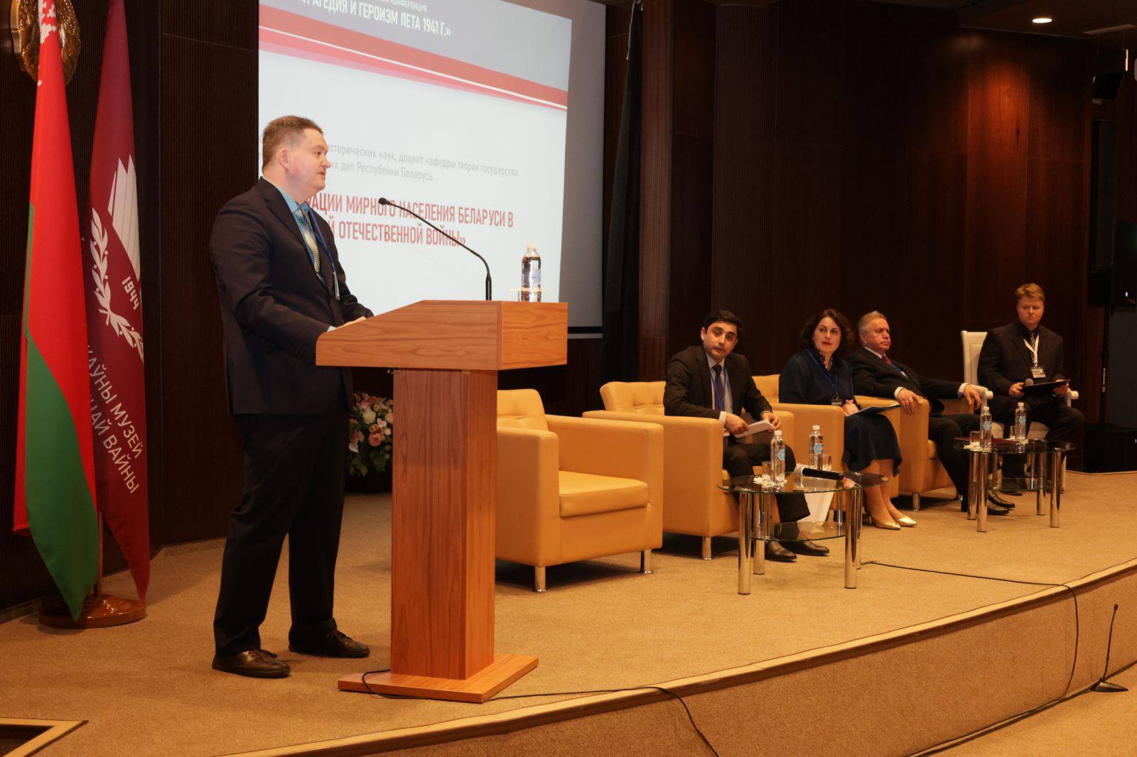 Пленарное заседание конференции открыл доцент кафедры теории и истории государства и права, кандидат исторических наук Сергей Лапанович с докладом «Мероприятия по эвакуации мирного населения Беларуси в начальный период Великой Отечественной войны».