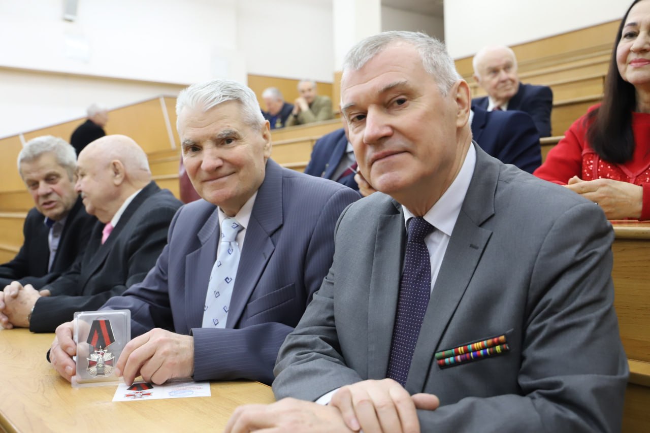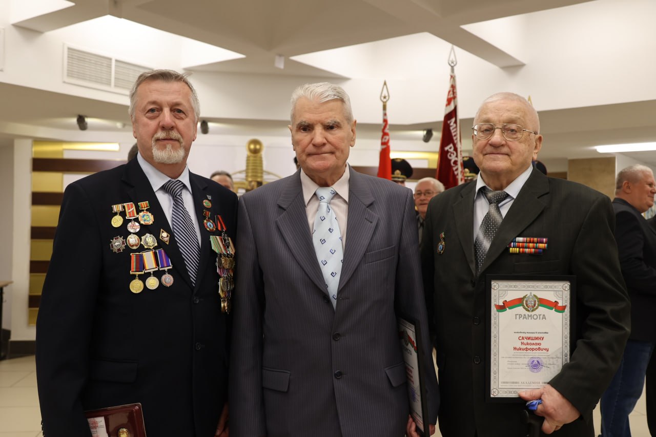 Ряду представителей старшего поколения вручены грамоты и благодарности академии, нагрудные знаки альма-матер и Департамента по ядерной и радиационной безопасности МЧС «За заслугі ў пераадоленні наступстваў катастрофы на Чарнобыльскай АЭС».