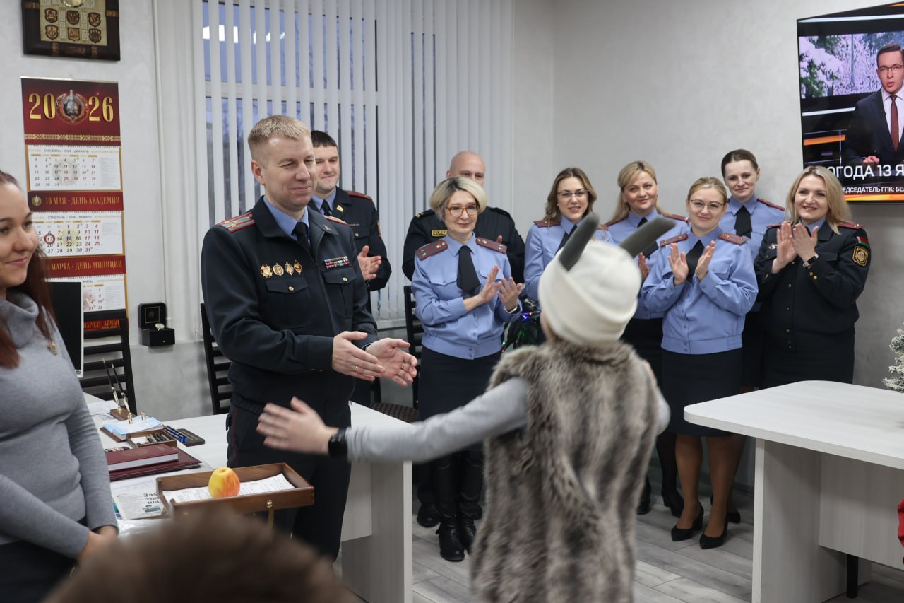 Атмосферу Колядок помогли создать дети и взрослые Михановичского центра культуры. Среди гостей - коза, цыганка с предсказаниями, медведь и красны-девицы. Первым необычных гостей встретил руководитель вуза генерал-майор милиции Александр Астрейко.