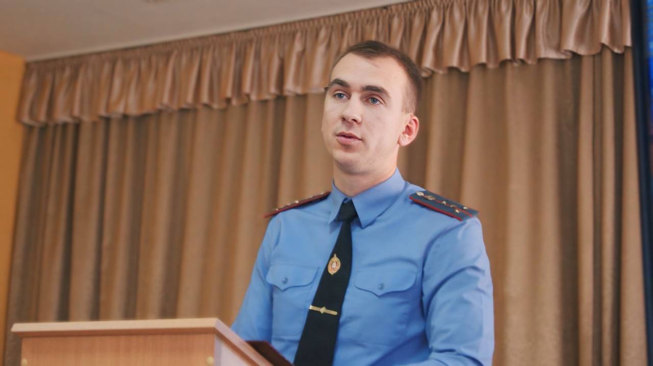 Старший инспектор группы профессионально-ориентационной работы отдела идеологической работы Академии МВД Денис Климович представил учащимся информацию о возможностях получения высшего образования в милицейской альма-матер.
